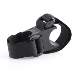 Uchwyt na latarkę z krzyżującymi się ze sobą wycięciami umożliwiającymi przymocowanie latarki np. do kierownicy roweru.
